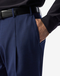Crafted from a pure virgin wool, these navy blue single-dart Corneliani trousers reward the wearer with unparalleled comfort. The exceptional quality of the fabric makes this durable garment ideal for everyday wear. DETAILS & MATERIALS - 100% wool - unlined trousers made from micropatterned wool - contemporary fit - single-dart - mid rise - front slash pockets - rear welt pockets - belt loops - fly with waistband - bottom width 19 cm FIT & WASHING - The model is wearing a size 50 (IT). Model measurements: height 187cm, chest 98cm, waist 82cm, hips 98cm. Dry clean with perchloroethylene, do not bleach, maximum iron temperature 110A°, do not tumble dry