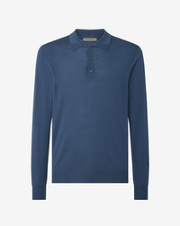 This long-sleeved octane blue polo shirt, made from ultra fine gauge 18 wool has the perfect balance between elegance and excellence in hand craft. Its lightweight and incredibly soft structure adds a refined touch to the garment. DETAILS & MATERIALS - 100% virgin wool - long-sleeved buttoned polo shirt made from ultra fine 120s combed wool - 18 gauge - made in Italy FIT & WASHING - The model is wearing a size 50 (IT). Model measurements: height 187cm, chest 98cm, waist 82cm, hips 98cm. Dry clean with perchloroethylene, do not bleach, maximum iron temperature 110A°, do not tumble dry