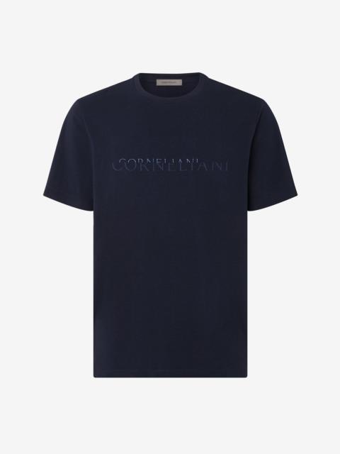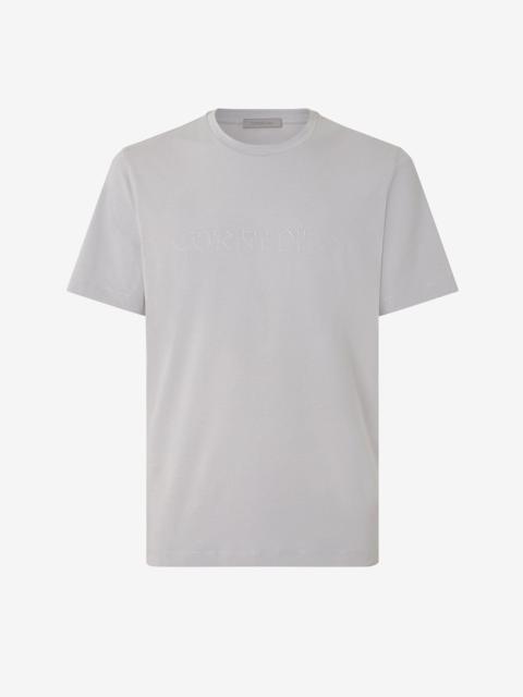 Pale grey short-sleeved t-shirt made from stretch cotton for comfort and amazing softness. This staple of the Spring-Summer wardrobe features an embossed Corneliani logo print. DETAILS & MATERIALS - 94% cotton, 6% elastane - Short-sleeved crew neck t-shirt made from enzymed stretch jersey with embossed logo print and embroidery FIT & WASHING - The model is wearing a size 50 (IT). Model measurements: height 187cm, chest 98cm, waist 82cm, hips 98cm. Dry clean with perchloroethylene, do not bleach, maximum iron temperature 110°, do not tumble dry