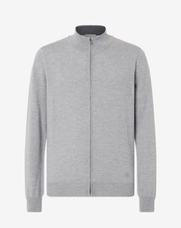 With an essential, sophisticated design, this light melange grey full zip jumper made from extra fine wool combines functionality and textile quality. Made from pure triple-twisted combed merino wool in 12 gauge, it stands out for its clean appearance and the natural brilliance of its colour. The triple twisted yarn guarantees high elasticity, strength and durability over time, reducing the risk of pilling and ensuring easy maintenance, even in the washing machine at low temperatures. Fully traceable and responsible, it is OEKO-TEX® certified, a guarantee of quality and safety. DETAILS AND MATERIALS - 100% virgin wool - full zip long-sleeved jumper made from pure extra fine combed triple twisted wool - 12 gauge - Made in Italy FIT & WASHING - Dry clean with perchloroethylene, do not bleach, do not tumble dry, maximum iron temperature 110°