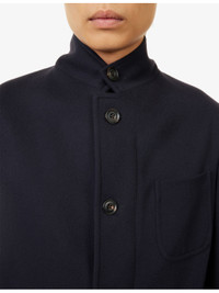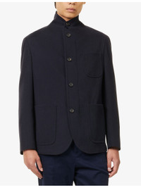 PRODUCT DETAILS - Corneliani wool jacket - 100% wool; lining 100% polyamide - Exposed button fastening with a concealed zip fastening at front - Stand collar, long sleeves, three patch pockets at front, one interior slip pocket - Dry clean - Made in Italy - Size UK 40: length 33in / 84cm, chest 37.7in / 96cm - Model is 6ft 2in/1.88m and wears a size UK 40 - Midweight, non-stretch Ref: R04482939