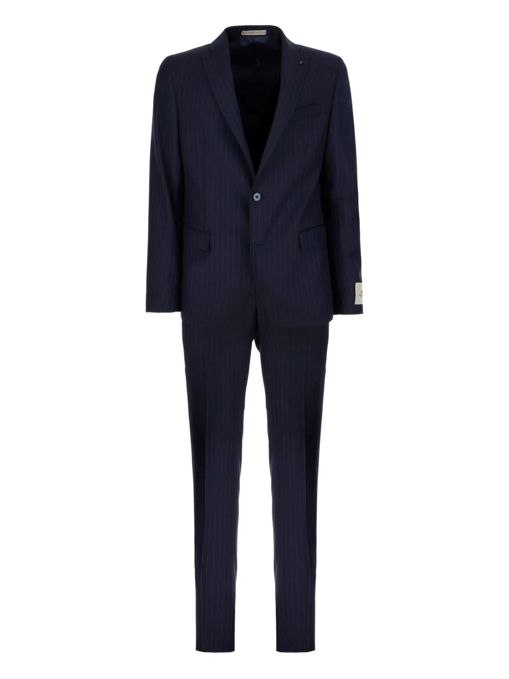 pinstripe buttoned suit Highlights - Blue - Pinstripe - Button fastening - Single-breasted - Peak lapels - Flap pockets Made in Italy Composition Fabric 100% Washing instructions Read Manufacturer Guidelines