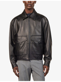 Pointed-Collar Boxy-Fit Leather Bomber Jacket