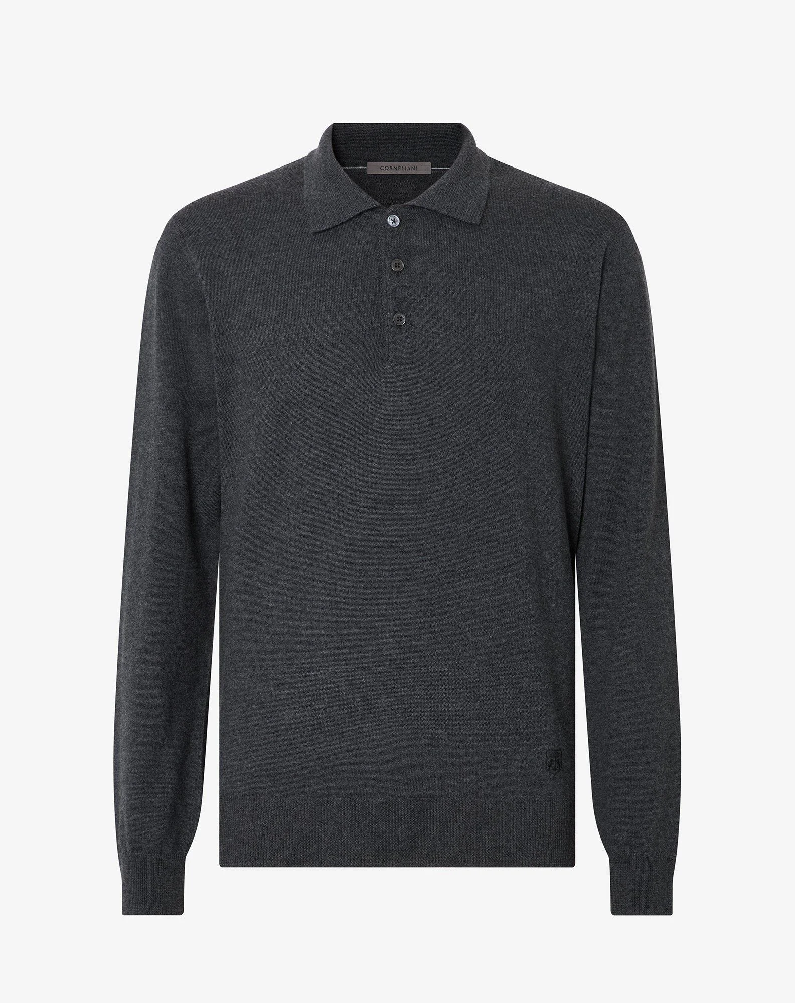 Essential elegance and textile innovation define this long-sleeved anthracite grey polo shirt made from pure extra fine merino wool. Made with triple-twisted yarn, it offers a sophisticated combination of softness, strength and elasticity, with a natural shine that enhances the intense colour and clean structure of the garment. The 12 gauge gives a light yet consistent feel, ideal for any season. The discreet buttons on the collar add a formal touch, keeping the style simple and versatile. OEKO-TEX certified, this garment has been produced with a special regard for consumer health and environmental sustainability. Machine washable at low temperatures, this polo shirt is the perfect balance between contemporary luxury and everyday functionality. DETAILS AND MATERIALS - 100% virgin wool - long-sleeved button-up polo shirt made from extra fine combed triple twisted wool - 12 gauge - Made in Italy FIT & WASHING - Dry clean with perchloroethylene, do not bleach, do not tumble dry, maximum iron temperature 110°