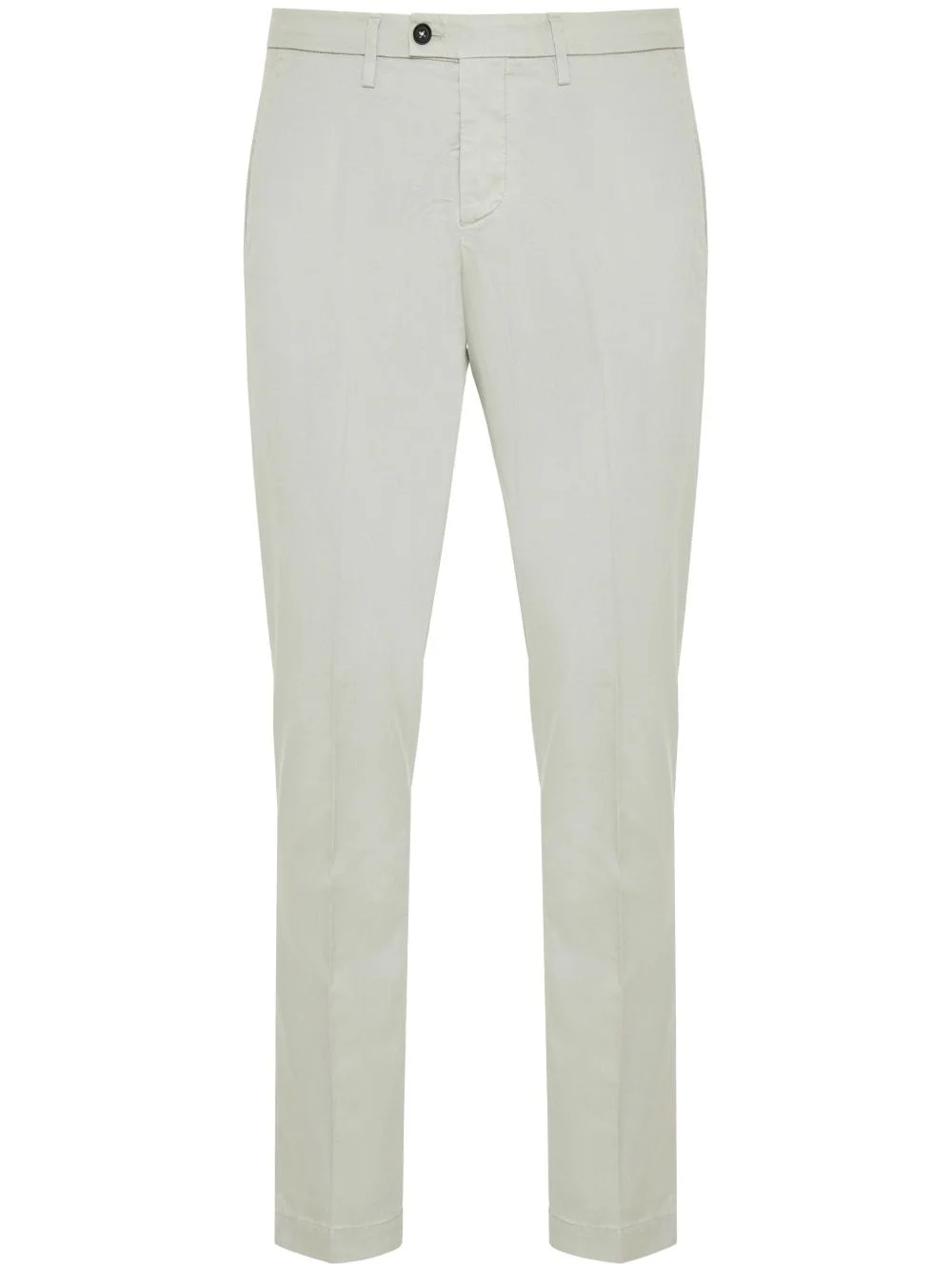 pressed-crease trousers Highlights - Light grey - Off-centre front button fastening - Two side slash pockets - Two rear jetted pockets Imported Composition Lyocell 77%, Cotton 20%, Spandex/Elastane 3%