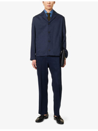 PRODUCT DETAILS - Corneliani linen and wool-blend overshirt - 52% linen, 33% wool, 15% mohair wool - Exposed button fastenings at front - Regular fit, bowling collar, long sleeves, two side slip pockets, unlined - Dry clean - Made in Italy - Size UK 40: length 28in / 72cm, chest 33in / 84cm - Model is 6ft 2in/1.88m and wears a size UK 40 - Lightweight, non-stretch - Comes with a dust bag Ref: R04457628