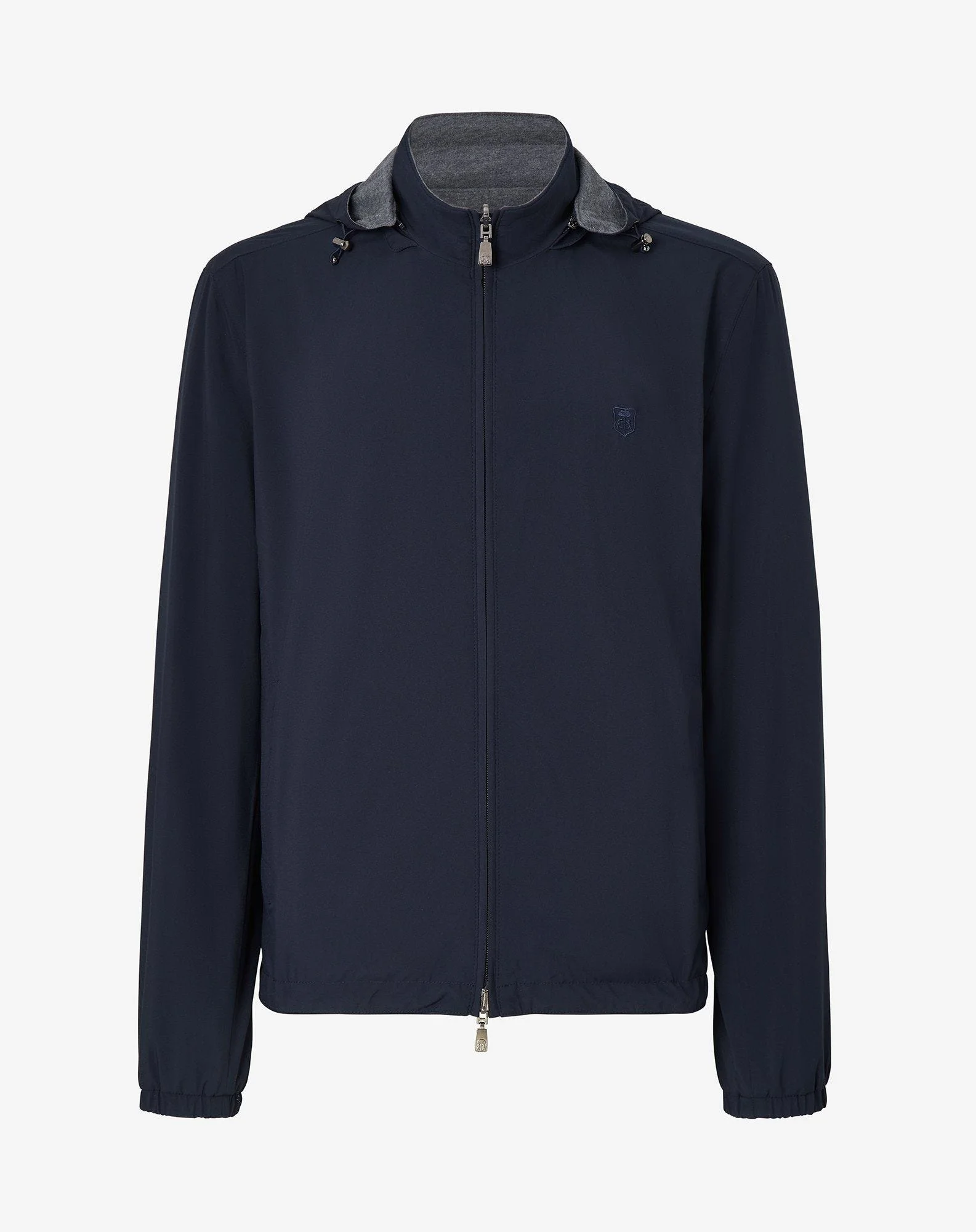 Lightweight, practical and always impeccable, the outerwear in the Spring Summer collection features must-haves designed to wear over a suit for a formal look or over a sweater and pants for a casual look. Featuring a design that inspires new contours, this season’s jackets and blazers have become dynamic and high-performance thanks to natural and technical fabrics. DETAILS & MATERIALS - 100% polyester - Reversible jacket with jersey lining - Zip fastening - Detachable hood with drawstring and adjusters - Drawstring and adjusters at hem - Elasticated cuffs - Garment length 67 cm FIT & WASHING - The model size is 50 (IT) - Model's measurements: height 187cm, chest 98cm, waist 82cm, hips 98cm