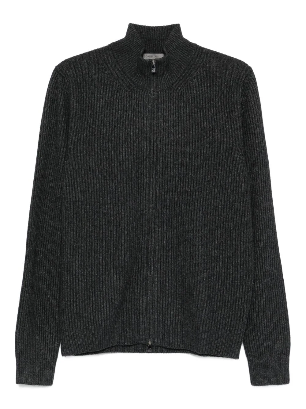 ribbed zip-up cardigan Highlights - Grey - Ribbed texture - Zip fastening - High neck - Long sleeves - Straight hem Made in Italy Composition Virgin Wool 43%, Viscose 28%, Cashmere 24%, Polyamide 5% SIZE & FIT Model measurements Height 6 ft 1 in(1.85 m) Bust/Chest 38.58 in(98 cm) Hips 37 in(94 cm) Waist 30.31 in(77 cm) Washing instructions Hand Wash