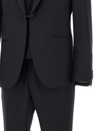 satin-trim three-piece suit Highlights - Black - Front button fastening - Concealed fly and button fastening - Chest welt pocket - Two front jetted pockets Imported Composition Fabric 100%