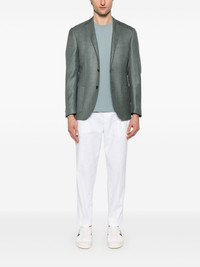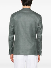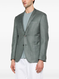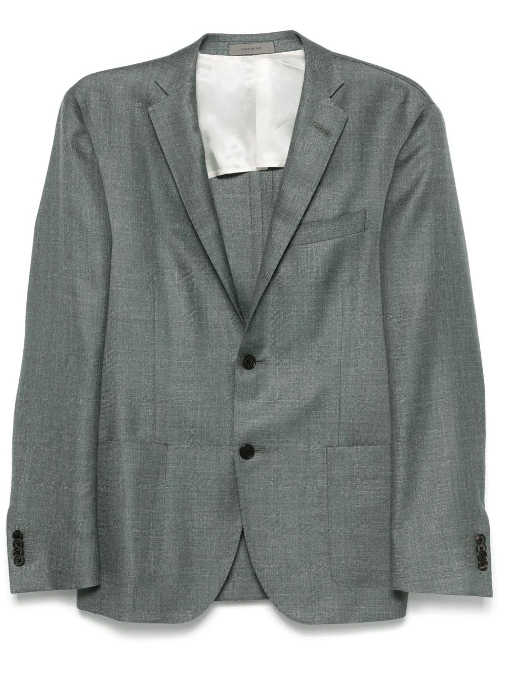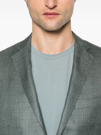 single-breasted blazer Highlights - Blue-grey - Buttoned-cuff sleeves - English rear vents - Two front patch pockets - Chest welt pocket Made in Italy Composition Outer: Virgin Wool 65%, Silk 21%, Linen/Flax 14% Lining: Viscose 100% SIZE & FIT Model measurements Height 6 ft 2 in(1.87 m) Bust/Chest 37.79 in(96 cm) Hips 37.79 in(96 cm) Waist 30.31 in(77 cm) FittingInformation Designed for a slim fit, offering a comfortable fit that sits just away from the body The vented hem offers movement at the rear Made from a midweight non-stretch fabric Washing instructions Dry Clean Only