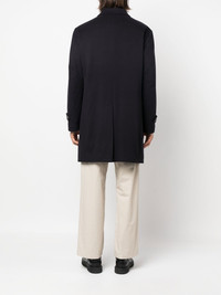 single-breasted coat Highlights - Dark blue - Wool - Classic collar - Concealed front fastening - Long sleeves - Two side inset pockets - Mid-length Made in Italy Composition Lining: Polyester 100% Outer: Wool 100% SIZE & FIT Model measurements Height 6 ft 2 in(1.89 m) Bust/Chest 37.79 in(96 cm) Hips 37 in(94 cm) Waist 29.92 in(76 cm) FittingInformation This piece fits true to size. We recommend you get your regular size Cut for a loose fit Made with a mid-weight non-stretch fabric Washing instructions Dry Clean Only