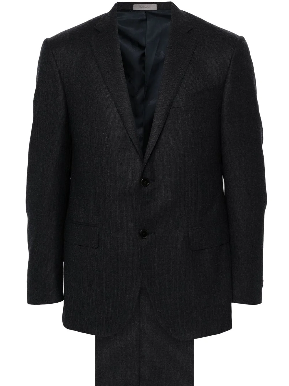 single-breasted suit Highlights - Dark grey - Virgin wool blend - Ribbed detailing - Melange effect - Blazer - Notched lapels - Shoulder pads - Long sleeves - Buttoned cuffs - Chest welt pocket - Dart detailing - Two side flap pockets - English rear vents - Logo-print lining - Curved hem - Front button fastening - Trousers - Belt loops - Two diagonal pockets to the sides - Pressed crease - Two rear button-fastening jetted pockets - Tapered leg - Concealed fly and button fastening Made in Italy Composition Outer: Virgin Wool 96%, Cashmere 4% Lining: Cupro 100%, Viscose 100%, Modal 50%, Combed Cotton 50% SIZE & FIT Model measurements Height 6 ft 2 in(1.88 m) Bust/Chest 36.61 in(93 cm) Hips 35.82 in(91 cm) Waist 27.95 in(71 cm) FittingInformation Tailored for a slim fit, offering a comfortable fit that sits just away from the body The unfinished hems allow for the length to be altered Made from a midweight non-stretch fabric This piece fits true to size – take your usual size Washing instructions Dry Clean Only