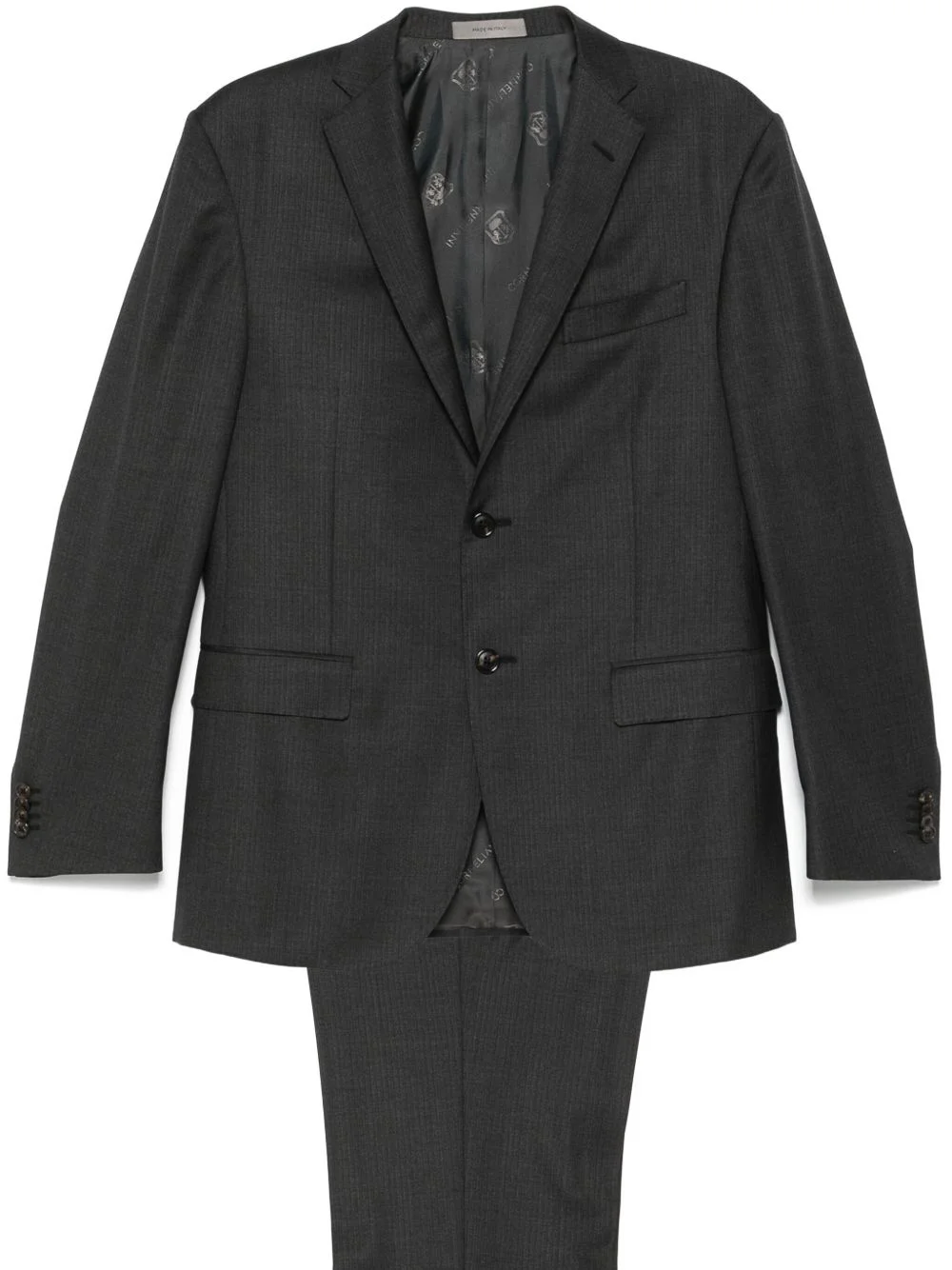 single-breasted suit Highlights - Anthracite grey - Virgin wool - Interlock twill weave - Melange effect Made in Italy Composition Outer: Virgin Wool 100% Lining: Cupro 100%, Viscose 100%, Modal 50%, Cotton 50% SIZE & FIT Model measurements Height 6 ft 2 in(1.87 m) Bust/Chest 37.79 in(96 cm) Hips 37.79 in(96 cm) Waist 30.31 in(77 cm) FittingInformation Tailored for a slim fit, offering a comfortable fit that sits just away from the body The unfinished hems allow for the length to be altered Made from a midweight non-stretch fabric