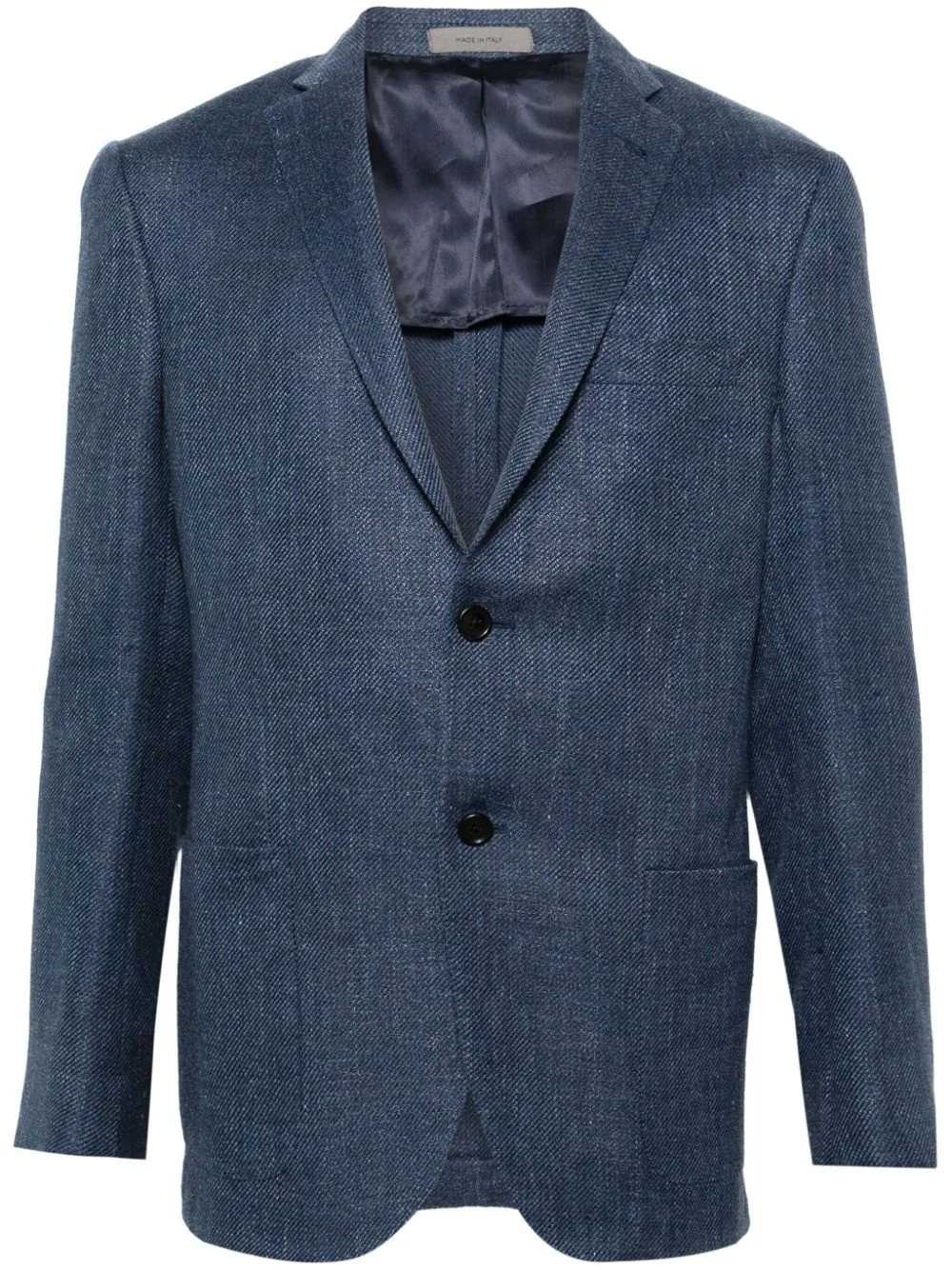 single-breasted twill blazer Highlights - Navy blue - Virgin wool blend - Twill weave - Melange effect - Notched lapels - Front button fastening - Long sleeves - Buttoned cuffs - Chest welt pocket - Two front patch pockets - English rear vents - Multiple internal slip pockets - Straight hem - Partial lining Made in Italy Composition Outer: Virgin Wool 58%, Linen/Flax 42% Lining: Viscose 100% SIZE & FIT Model measurements Height 6 ft 2 in(1.87 m) Bust/Chest 37.79 in(96 cm) Hips 37.79 in(96 cm) Waist 30.31 in(77 cm) FittingInformation Designed for a slim fit, offering a comfortable fit that sits just away from the body The vented hem offers movement at the rear Made from a midweight non-stretch fabric This piece fits true to size – take your usual size Washing instructions Dry Clean Only