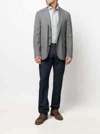 slim-cut denim jeans dark blue stretch-cotton slim cut logo patch to the rear belt loops front button and zip fastening classic five pockets Made In Italy Composition Outer: Cotton 97%, Spandex/Elastane 3% Lining: Polyester 65%, Cotton 35% SIZE & FIT Model measurements Height 6 ft 1 in(1.85 m) Bust/Chest 37.79 in(96 cm) Hips 37.4 in(95 cm) Waist 30.7 in(78 cm) FittingInformation This piece fits true to size. We recommend you get your regular size Cut for a slim fit Made with a mid-weight stretch fabric