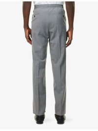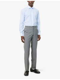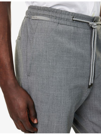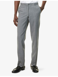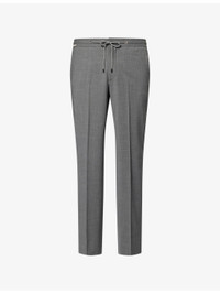 PRODUCT DETAILS - Corneliani stretch-wool trousers - 98% virgin wool, 2% elastane - Exposed button and concealed zip-fly fastening at front - Regular fit, mid-rise, elasticated drawstring waistband, slim leg, two side slip pockets, silver-toned hardware, pressed creases at leg, two rear welt buttoned pockets - Dry clean - Made in Romania - Size UK 32: rise 12in / 30.5cm, inside leg 30in / 76cm, leg opening 14in / 35cm - Model is 6ft 2in/1.88m and wears a size UK 32 - Lightweight, non-stretch Ref: R04482906