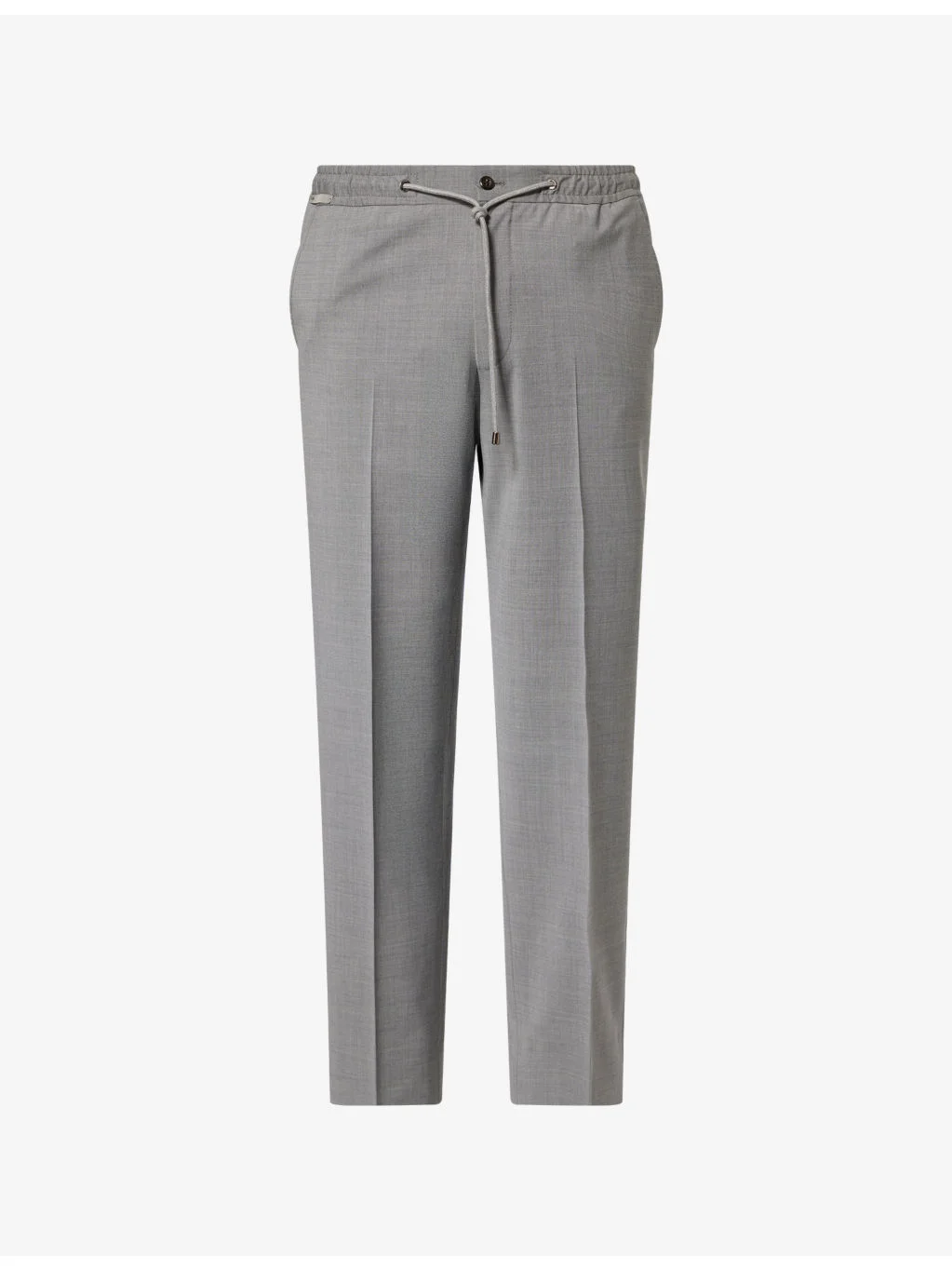 PRODUCT DETAILS - Corneliani wool trousers - 98% wool, 2% elastane - Button and zip-fly fastening - Regular fit, slim leg, pressed pleat, drawstring elasticated waistband, two slip pockets at sides, two buttoned welt pockets at back - Dry clean - True to size - Size UK 40: rise 11.5in / 29.2cm, inside leg 31in / 78.7cm, leg opening 17.5in / 44.4cm - Model is 6ft 2in/1.88m and wears a size UK 40 - Lightweight, slight stretch Ref: R04560447