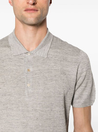 speckle-knit polo shirt Highlights - Nickel grey - Linen-silk blend - Speckle tricot knit - Ribbed trim - Polo collar - Front button placket - Short sleeves - Ribbed cuffs and hem - Straight hem Made in Italy Composition Linen/Flax 70%, Silk 30% SIZE & FIT Model measurements Height 6 ft 2 in(1.87 m) Bust/Chest 37.79 in(96 cm) Hips 37.79 in(96 cm) Waist 30.31 in(77 cm) FittingInformation Designed for a slim fit, this polo shirt offers a comfortable fit that sits just away from the body Made from a midweight non-stretch fabric, this piece offers minimal elasticity when worn This piece fits true to size – take your usual size