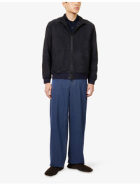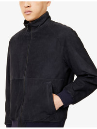PRODUCT DETAILS - Corneliani suede jacket - 100% lamb leather; lining 100% polyamide - Exposed zip fastening at front - Stand collar, long raglan sleeves, two slanted welt pockets at front, ribbed trims, removable padded lining - Specialist leather clean - Made in Italy - Size UK 40: length 28.3in / 72cm, chest 46.4in / 118cm - Model is 6ft 2in/1.88m and wears a size UK 40 - Midweight, non-stretch Ref: R04482918