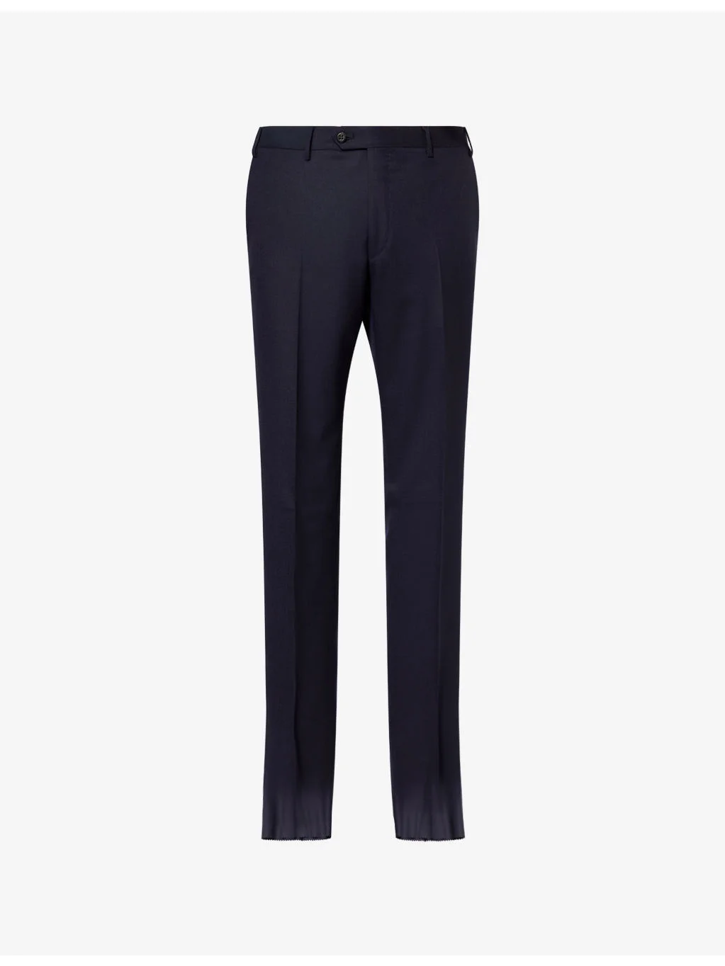 PRODUCT DETAILS - Corneliani wool trousers - 100% wool - Button and zip-fly fastening - Regular fit, tapered leg, pressed pleat, belt loops, structured waistband, two slip pockets at sides, two buttoned welt pockets at back - Dry clean - Made in Romania - True to size - Size UK 40: rise 10in / 25.4cm, inside leg (unaltered) 36.5in / 92.6cm, leg opening 15in / 48cm - Model is 6ft 2in/1.88m and wears a size UK 40 - Lightweight, non-stretch Ref: R04560443