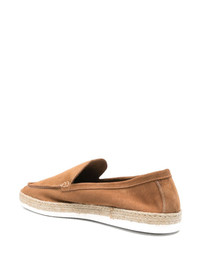suede loafers Highlights - Sand beige - Braided raffia sole - Moc stitching - Almond toe Made in Italy Composition Outer: Calf Suede 100% Sole: Rubber 100% Lining: Calf Leather 100%