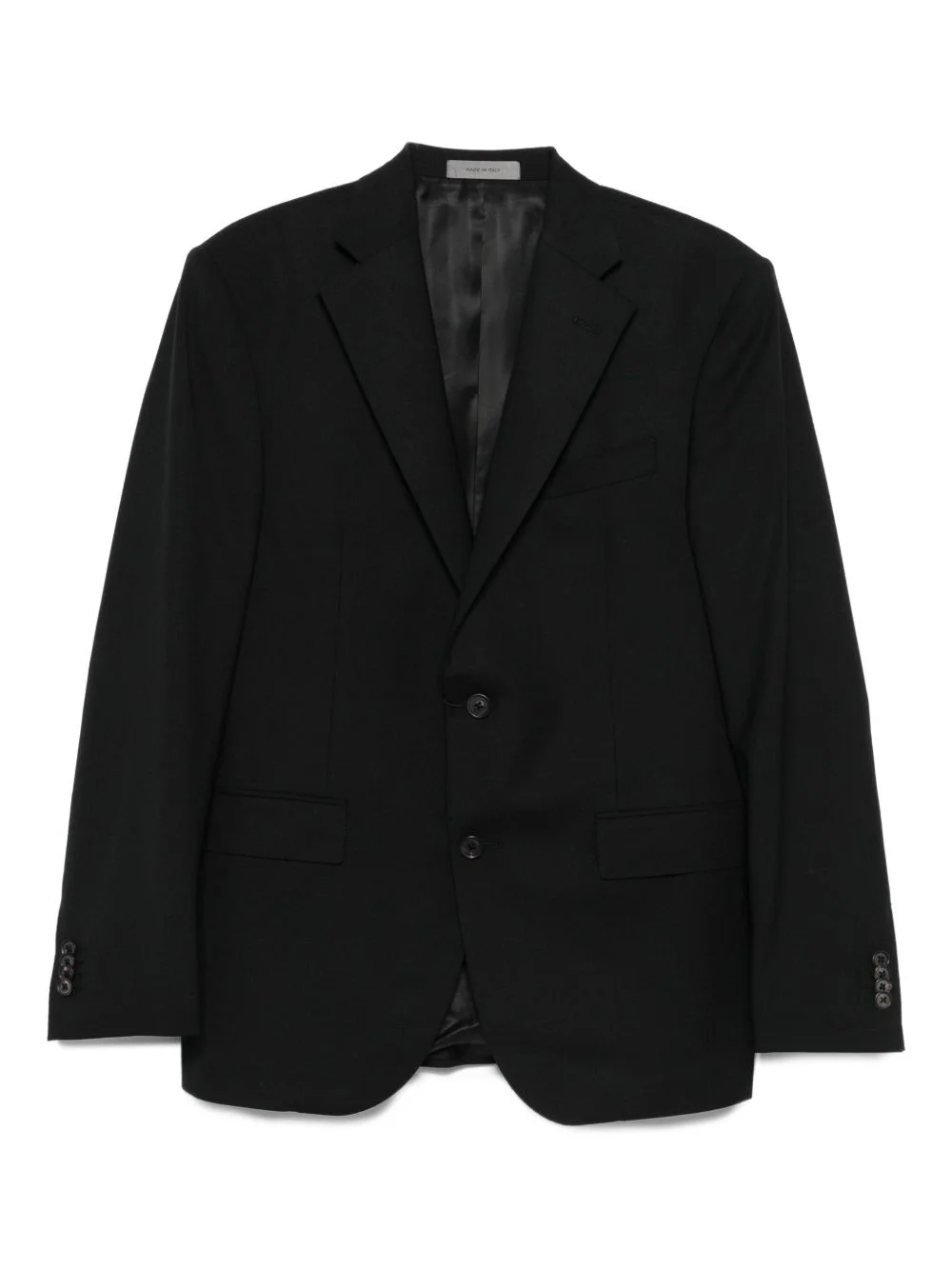 two-button suit Highlights - Black - Two-button fastening - Notched lapels - Flap pockets Made in Italy Composition Lining: Cupro 100%, Viscose 100%, Modal 50%, Cotton 50% Outer: Virgin Wool 98%, Elastane 2% Washing instructions Dry Clean Only