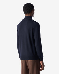 The pure wool mock turtleneck is one of winter's essential, a must-have casual garment for the season. Garments made with triple twisted yarn have a distinctive clean appearance, durability, and natural brilliance of colours. They are resistant to peeling and easy to care for, even suitable for washing machine at low temperatures. DETAILS AND MATERIALS - 100% virgin wool - long-sleeved mock turtleneck made from extra fine combed pure merino wool with triple twisted yarn - 12 gauge - Corneliani crest logo embroidered on front bottom - made in Italy FIT & WASHING - The model is wearing a size 50 (IT). Model measurements: height 188cm, chest 98cm, waist 81cm, hips 97cm. Dry clean with perchloroethylene, do not bleach, maximum iron temperature 110°, do not tumble dry
