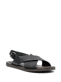 Waikiki Beach leather sandals black calf leather grained texture crossover strap at the toe open toe buckle-fastening ankle strap flat rubber sole Made in Italy Composition Lining: Calf Leather 100% Outer: Calf Leather 100% Sole: Rubber 100% SIZE & FIT Measurement HEEL 0.59 in(1.5 cm) Sole height 0.39 in(1 cm)