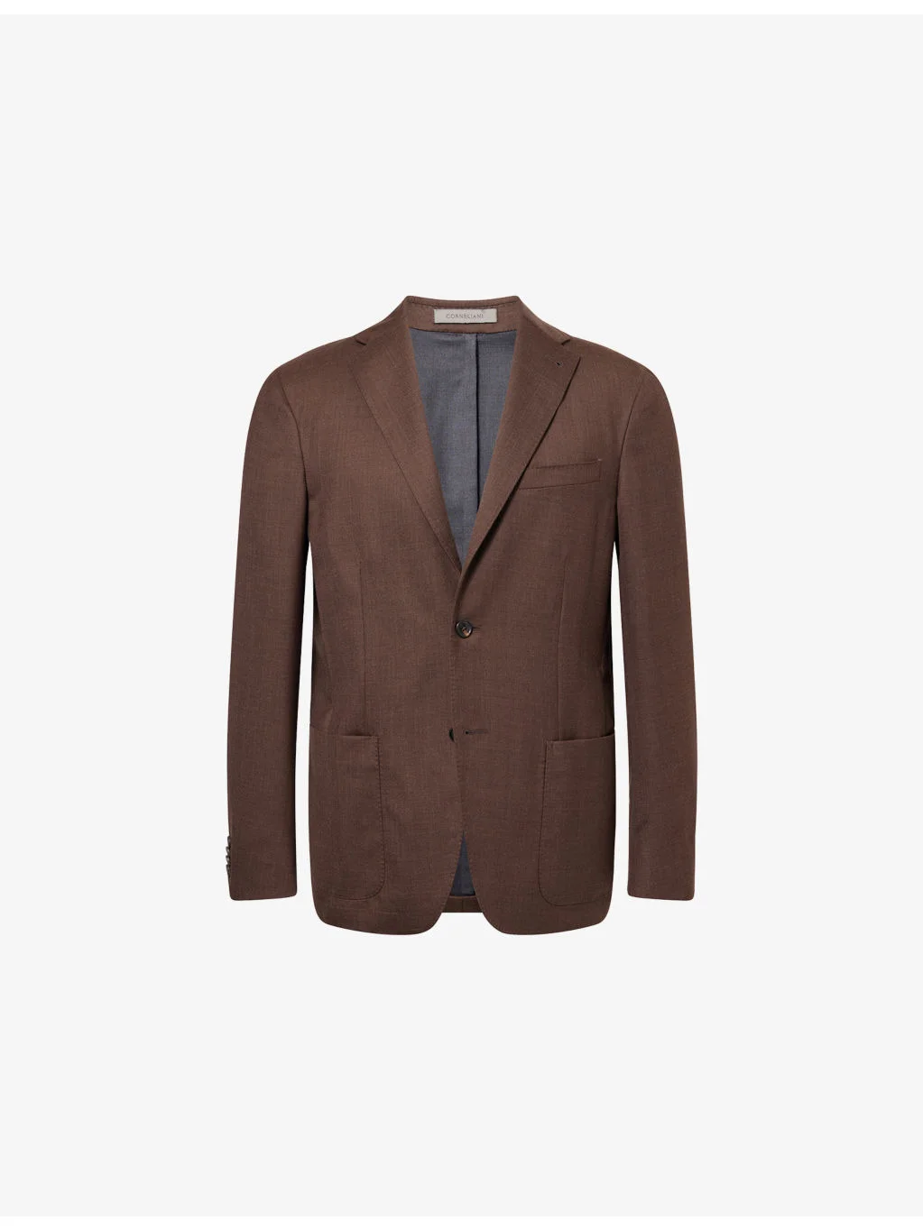 PRODUCT DETAILS - Corneliani silk-wool blend jacket - 80% wool, 20% silk - Exposed button fastening at front - Notched lapels, single-breasted, long sleeves, buttoned cuffs, two patch pockets, one welt chest pocket, double vent opening at back - Dry clean - Made in Italy - Size UK 40: length 32.2in / 82cm, chest 43.3in / 110cm - Model is 6ft 3in/1.91m and wears a size UK 40 - Lightweight, non-stretch Ref: R04482934
