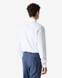 Designed for everyday elegance without sacrificing comfort, this long-sleeved shirt is made from pure cotton with a delicate light blue micro stripe pattern. The soft feel and impeccable construction make it an essential piece of contemporary wardrobe. The Italian collar and rounded cuffs add a formal yet versatile touch, an ideal match for more casual tailoring or suits. The regular fit guarantees proportion and freedom of movement, a garment of casual elegance with lots of attention to detail. DETAILS AND MATERIALS - 100% cotton - long sleeve cotton shirt - regular fit - straight point collar - rounded cuffs FIT & WASHING - This garment has a regular fit. The model is wearing a size 41 (IT). Model’s measurements: height 187cm, chest 98cm, waist 82cm, hips 98cm. Maximum wash temperature 40°, do not bleach, dry clean with perchloroethylene, do not tumble dry, maximum iron temperature 150°