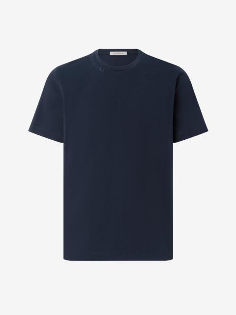 White short-sleeved t-shirt made from stretch cotton for comfort and amazing softness. This staple of the Spring-Summer wardrobe features a Corneliani logo embroidery on the neckline. DETAILS & MATERIALS - 94% cotton, 6% elastane - short sleeve crew neck t-shirt made from enzymed stretch jersey with embroidered neckline FIT & WASHING - The model is wearing a size 50 (IT). Model measurements: height 187cm, chest 98cm, waist 82cm, hips 98cm. Dry clean with perchloroethylene, do not bleach, maximum iron temperature 110°, do not tumble dry