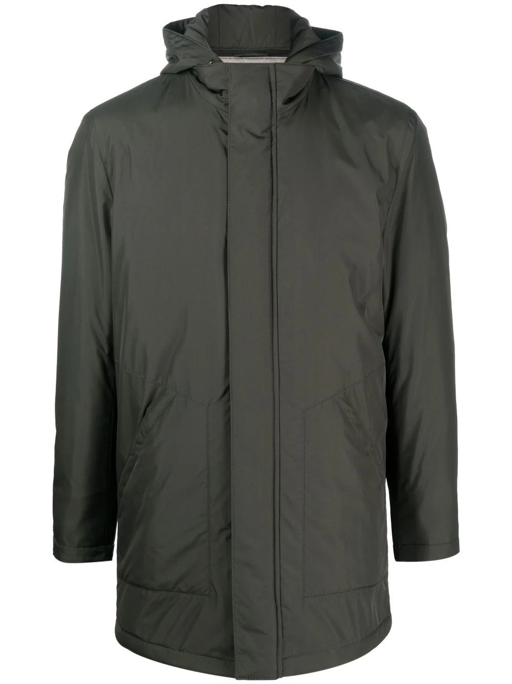 zip-fasten hooded coat dark green concealed front fastening front press-stud and zip fastening classic hood long sleeves straight hem Imported Composition Lining: Polyester 100%, Cotton 100% Outer: Polyester 100% SIZE & FIT Model measurements Height 6 ft 1 in(1.86 m) Bust/Chest 36.61 in(93 cm) Hips 37 in(94 cm) Waist 28.74 in(73 cm) FittingInformation This piece fits true to size. We recommend you get your regular size Cut for a loose fit Made with a mid-weight non-stretch fabric Washing instructions Dry Clean Only