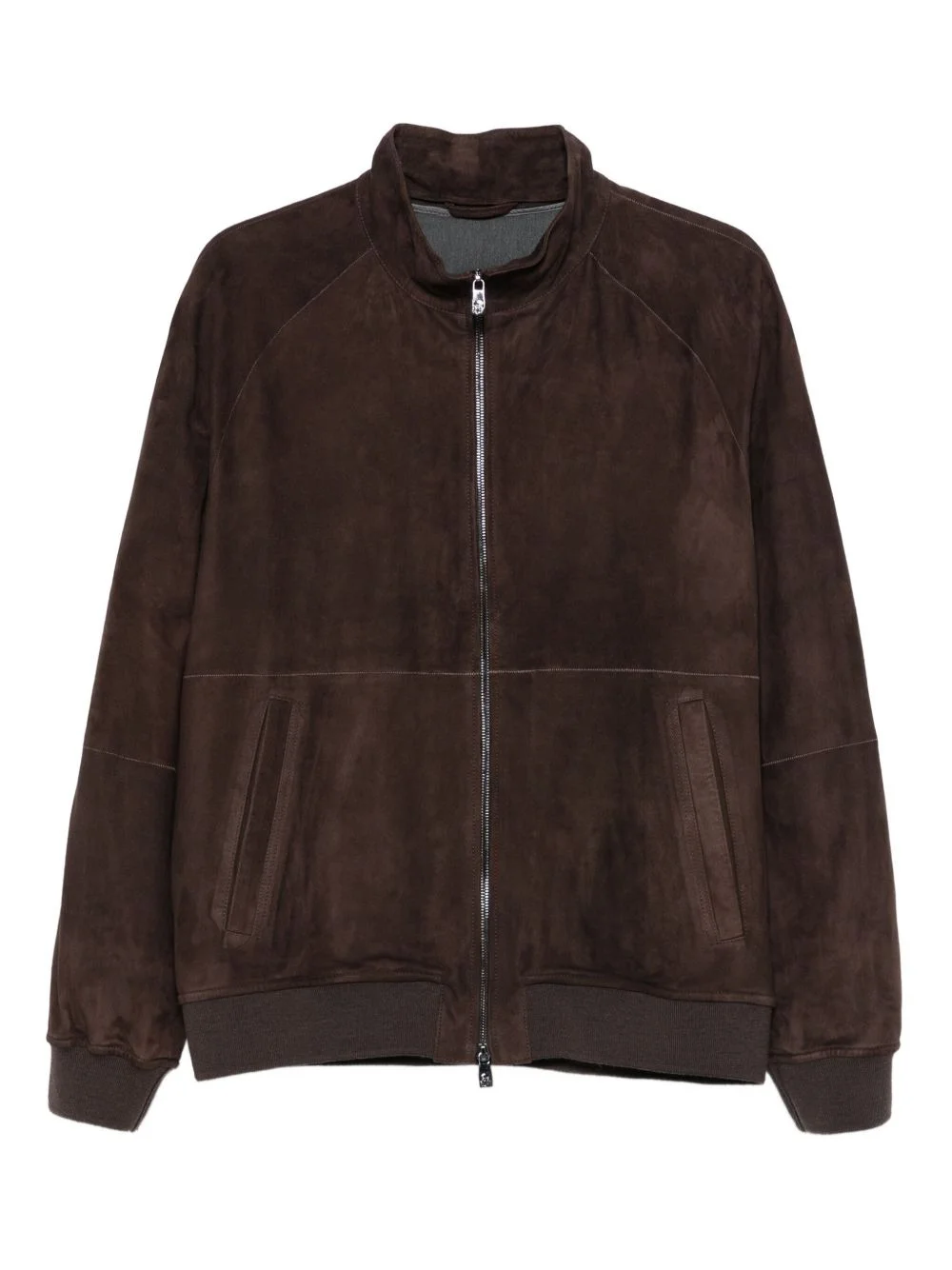 zip-front suede leather jacket Highlights - Brown - Suede - Zip fastening - Ribbed hem - Welt pockets Imported Composition Calf Suede 100% SIZE & FIT Model measurements Height 6 ft 2 in(1.87 m) Bust/Chest 36.41 in(92.5 cm) Hips 37 in(94 cm) Waist 29.52 in(75 cm) Washing instructions Read Manufacturer Guidelines