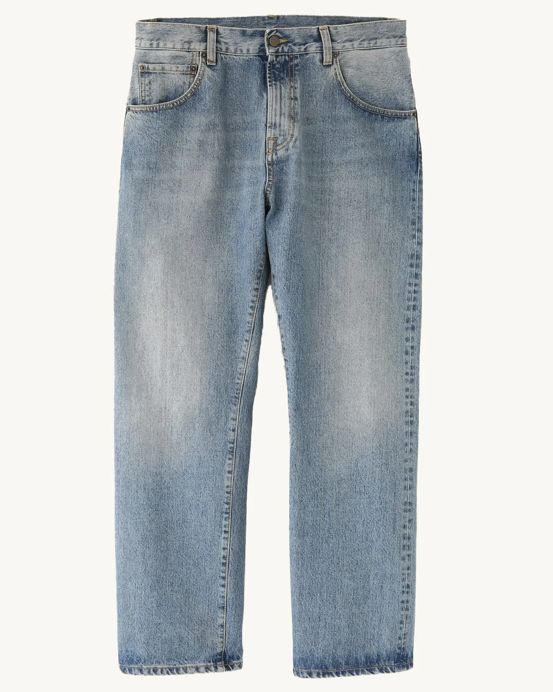 Organic Italian selvedge denim, washed down for a lived-in feel from day one. Straight-leg cut with classic denim detailing built for everyday wear. - 100% Organic Cotton - 14 oz - Straight Leg with 5 pockets - Selvedge - Washed Out - Custom hardware - Embossed leather patch - Milled in Italy by Candiani, sewn in Mauritius - JE0001-B Ante is 6’2” and is wearing a size M