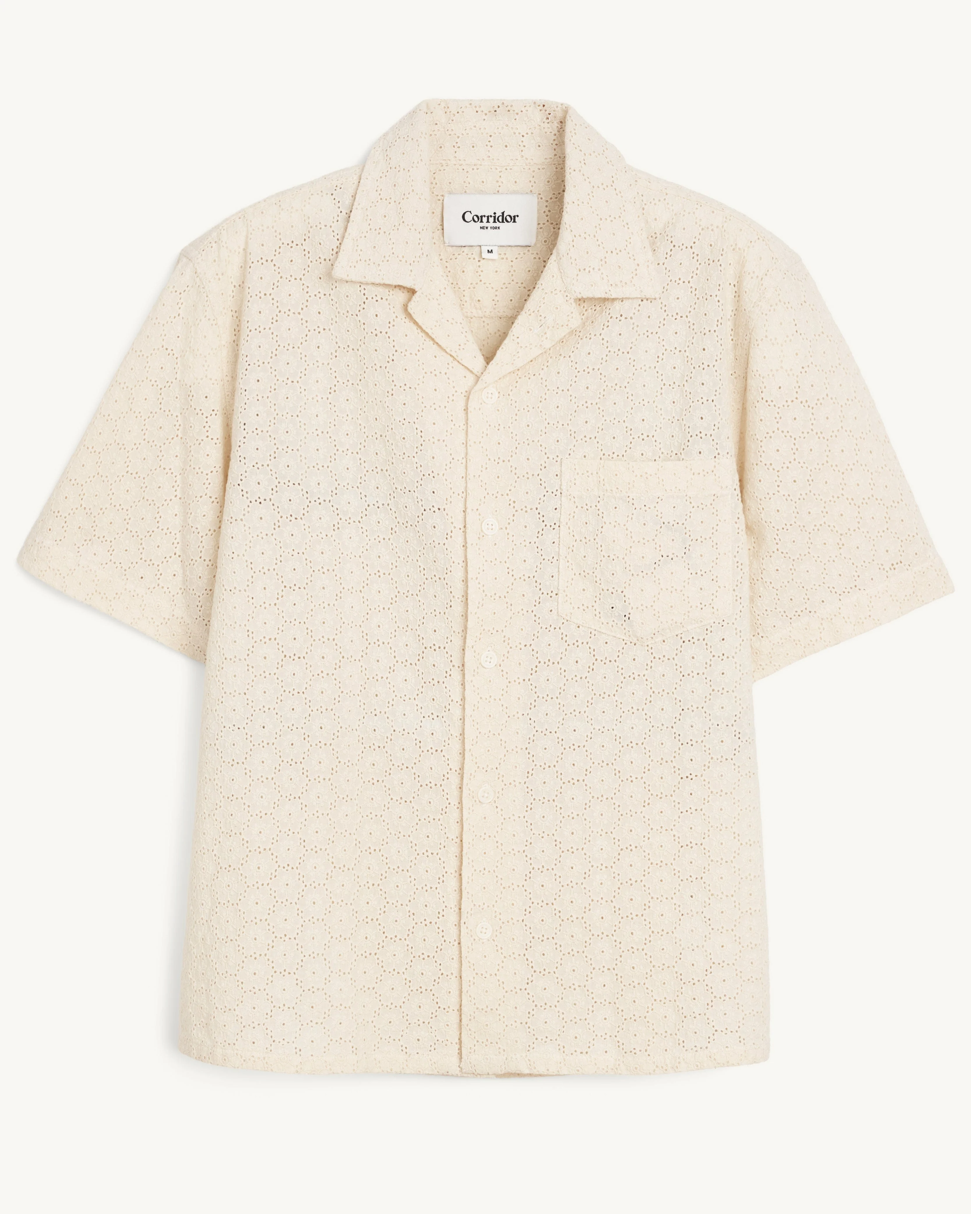 - 100% Cotton - 210 GSM - Floral Eyelet Lace - Regular Fit - Camp Collar - SS0268