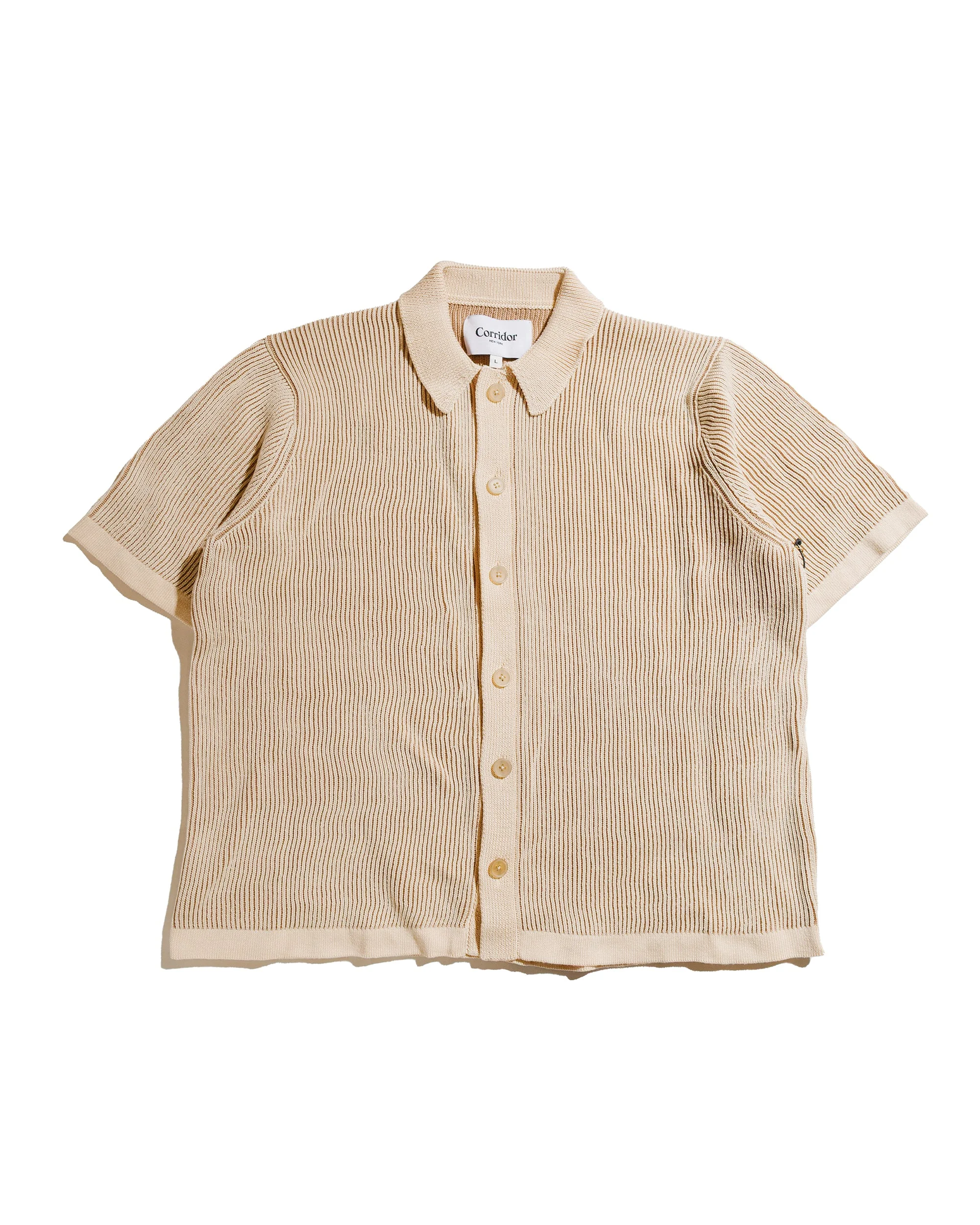 What we have come to realize is that Corridor does fabric like no one else. A key focus of theirs every season, it could not be more true than on their assortment of short sleeve button downs. This is no exception. The mercerized cotton with that ridge like feel is going to be a staple in your wardrobe for the next four months. Enjoy. DETAILS - Mercerized cotton knit - Contrast rib knit collar, placket, cuffs & hem - 100% cotton - Made in Peru - Model is 6'0” (183cm), 140lb (63kg) and wearing L