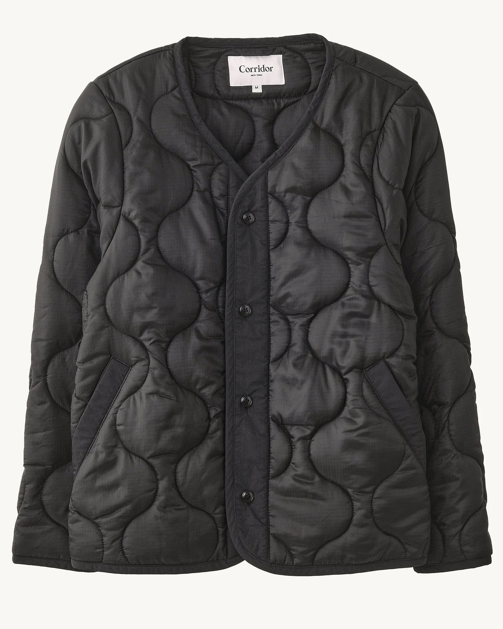 A lightweight ripstop quilted jacket with hip pockets and clean construction. Provides easy insulation and a sharp, minimal profile for transitional weather. - 100% Polyester Ripstop - Side entry hip pockets - Made in China - JKT0051 Anarcius is 6’1” and is wearing a size M.