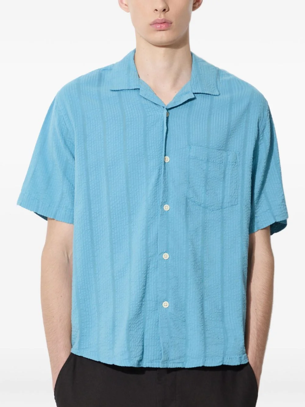 textured short-sleeve shirt Highlights - Light blue - Repp weave - Short sleeves - Button fastening - Collared neckline - Chest pocket Imported Composition Cotton 60%, Viscose 40% SIZE & FIT FittingInformation Designed for a relaxed fit, this piece allows for comfort and movement when worn Made from a lightweight non-stretch fabric Washing instructions Read Manufacturer Guidelines