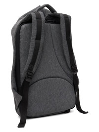 Water-resistant EcoYarn canvas expandable backpack in gray. · Fixed carry handle · Adjustable padded shoulder straps · Expandable zip compartment at face · Zip pocket and cinch fastening at side · Padded mesh panel at back face · Two-way zip closure · Padded laptop compartment · H17.5 x W13.25 x D8 in / 16L · Expanded: 25L Supplier color: Black melange