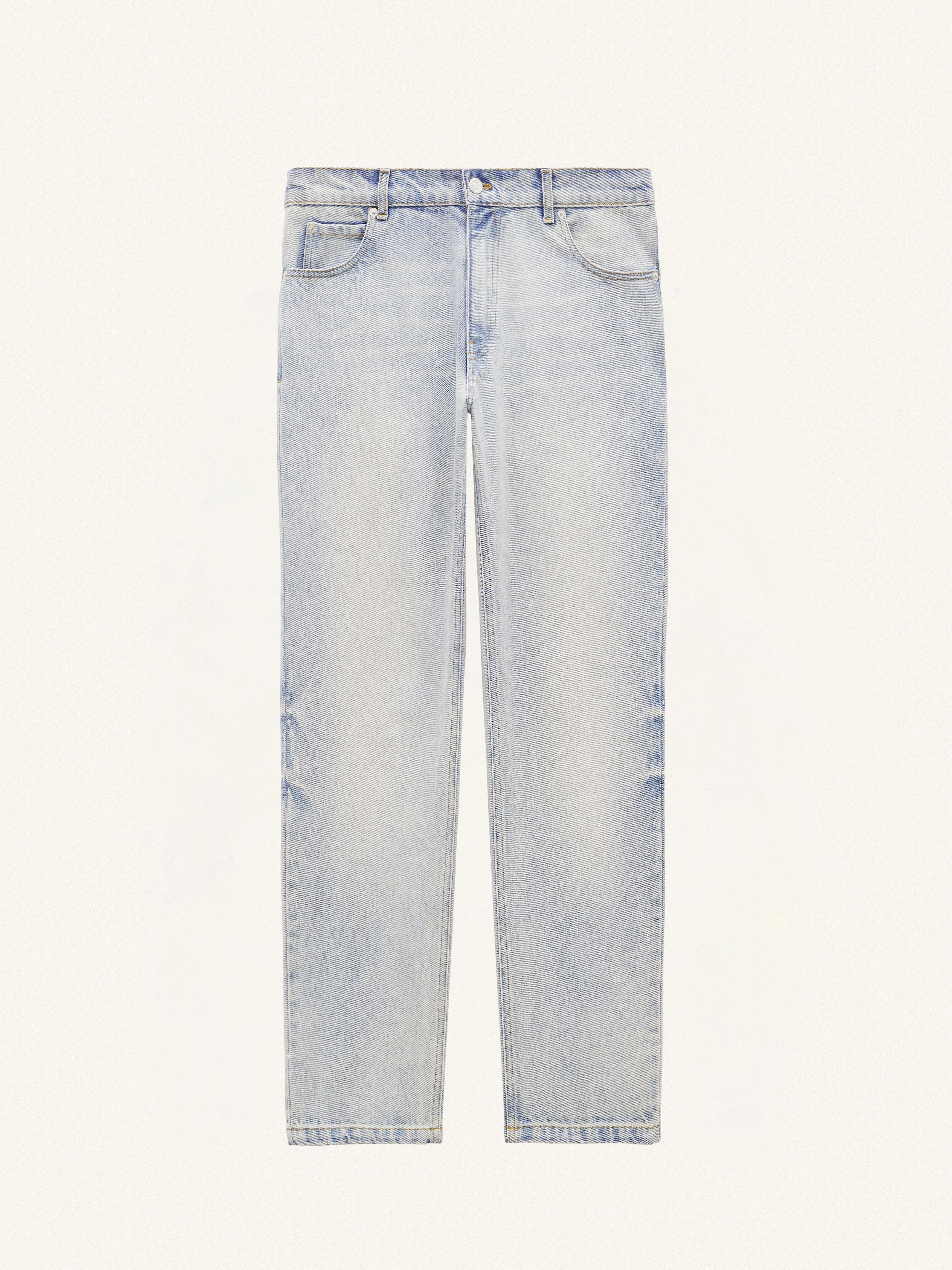 Straight denim pants with five pockets and AC logo. DETAILS Composition : 100% Coton Pays de fabrication : Tunisie Couleur : Bleu Clair Code Article : 124DPA022DE0016
