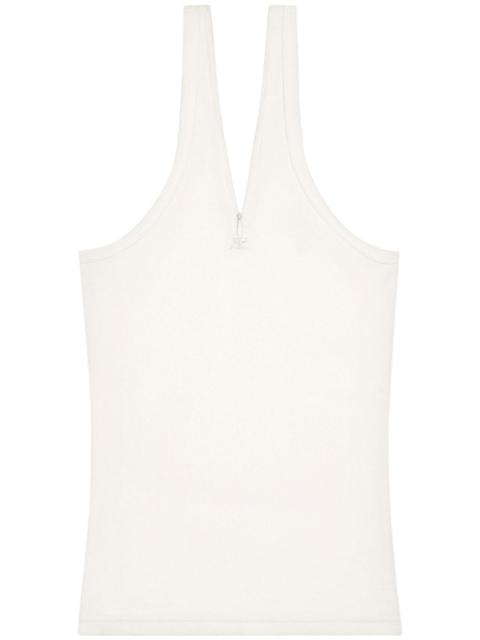 90's ribbed tank top Highlights - White - Stretch-cotton - Ribbed knit - Applique logo - V-neck - Rear criss-cross straps - Sleeveless - Straight hem Imported Composition Cotton 97%, Elastane 3%
