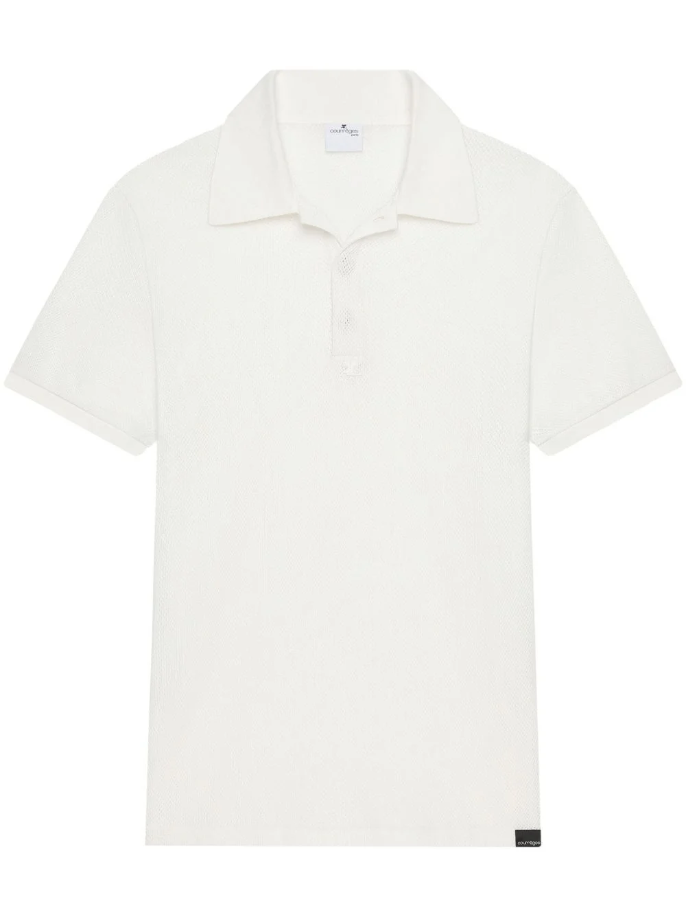 mesh polo shirt Highlights - White - Front button placket - Embroidered logo at the chest - Short sleeves - Straight hem Imported Composition Polyester 52%, Cotton 48%