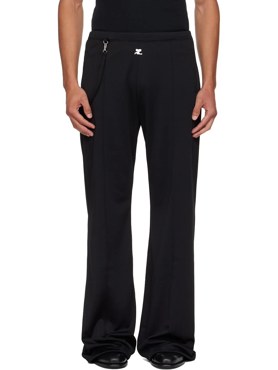 Flared interlock jersey track pants. · Concealed drawstring at elasticized waistband · Three-pocket styling · Embroidered logo patch at front · Detachable strap at front waist and back pocket · Pinched seams at legs Supplier color: Black 100% polyester. Made in Italy 252783M190001