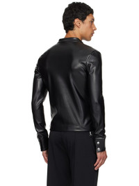 Buffed faux-leather jacket. · Press-stud fastening at band collar · Two-way zip closure · Logo embroidered at chest · Press-stud barrel cuffs Supplier color: Black 54% polyurethane, 46% polyester. Made in France 252783M213009
