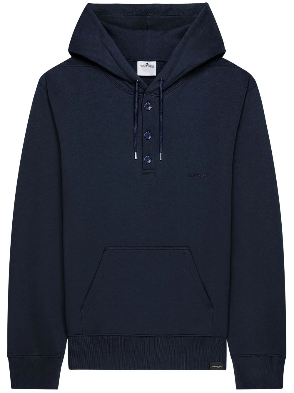 buttoned hoodie Highlights - Navy blue - Front button placket - Drawstring hood - Front pouch pocket - When buying this unisex item, keep in mind that it is graded in standard men's sizing. Imported Composition Cotton 100% SIZE & FIT Measurement CHEST 48.81 in(124 cm) SLEEVE LENGTH 25.19 in(64 cm) LENGTH 25.98 in(66 cm) Shoulder Width 19.29 in(49 cm)