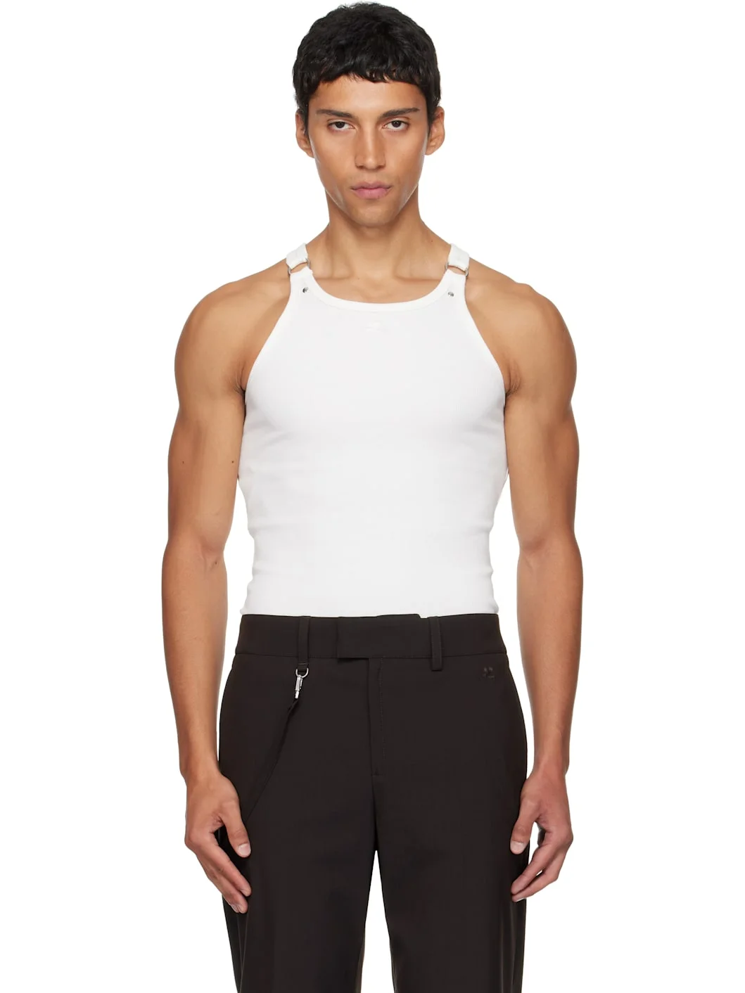 Stretch cotton ribbed jersey tank top. · Scoop neck · Logo embroidered at chest · Round hem · Rivet and O-ring at fixed shoulder straps Supplier color: Heritage white 98% cotton, 2% elastane. Made in Portugal 252783M213005
