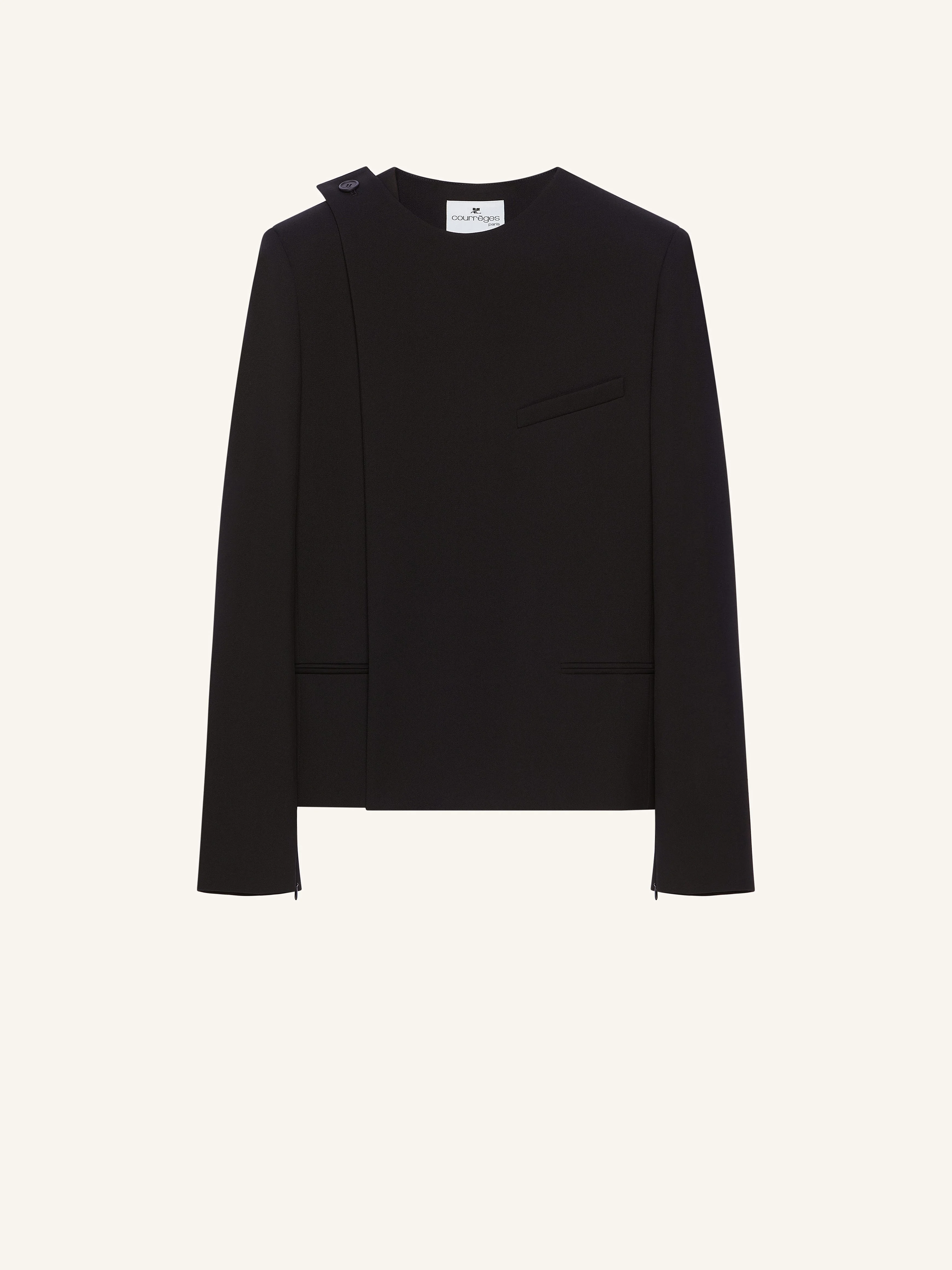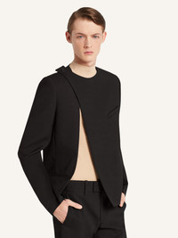 Fitted jacket with buttoned shoulder and three front welt pockets. Zipped sleeves. The model is 1.85m tall and wears a size 48. DETAILS Composition: 100% wool Country of Manufacture: SK SKU: 325CVE131WO01009999 Color: Black