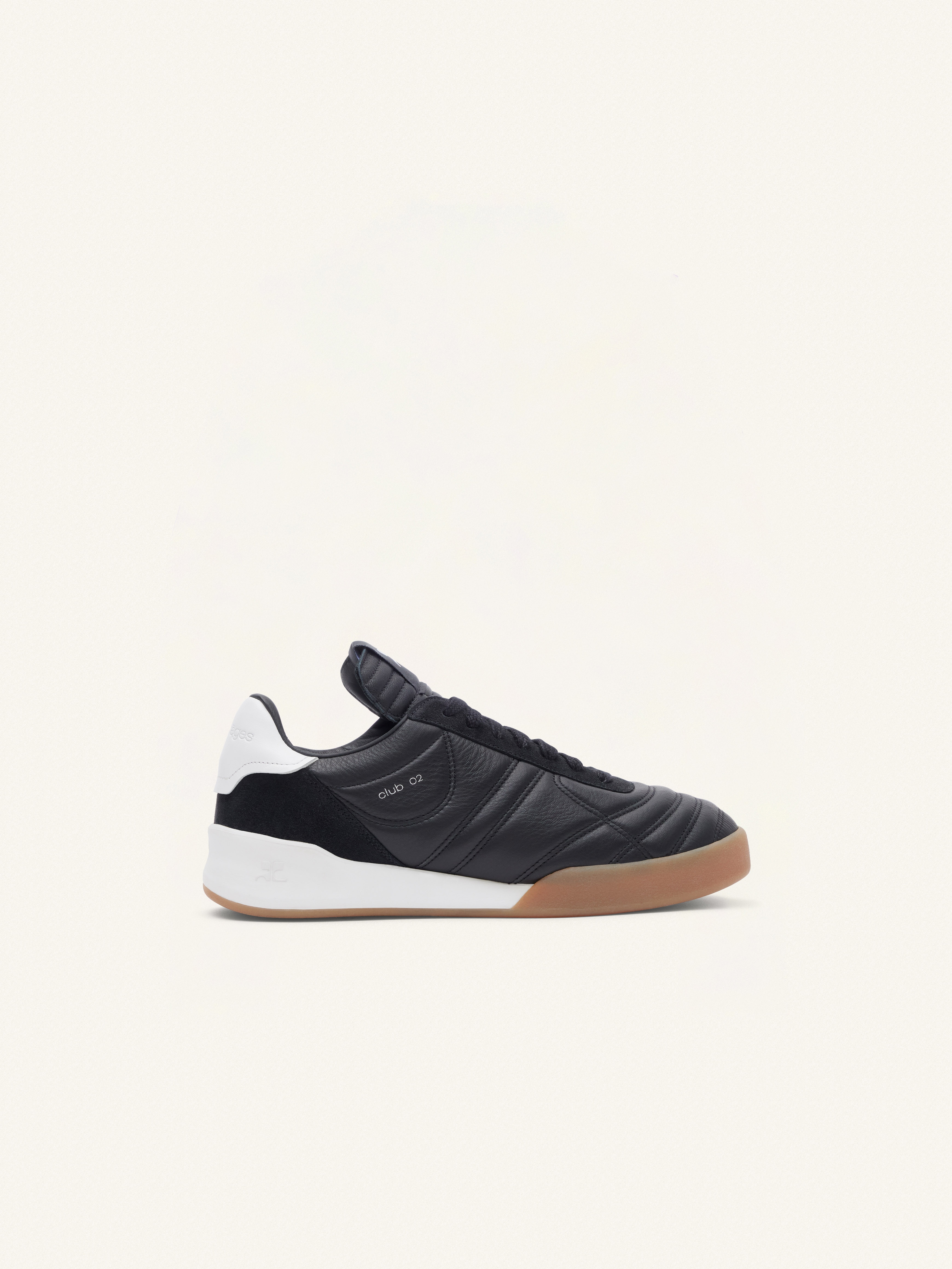 CLUB02 sneakers in leather with laces. AC logo label on the front and courrèges embossed on the sides and back. DETAILS Composition: 100% Leather Country of manufacture: Portugal Color: Black Item code: 223SSN001CR0023