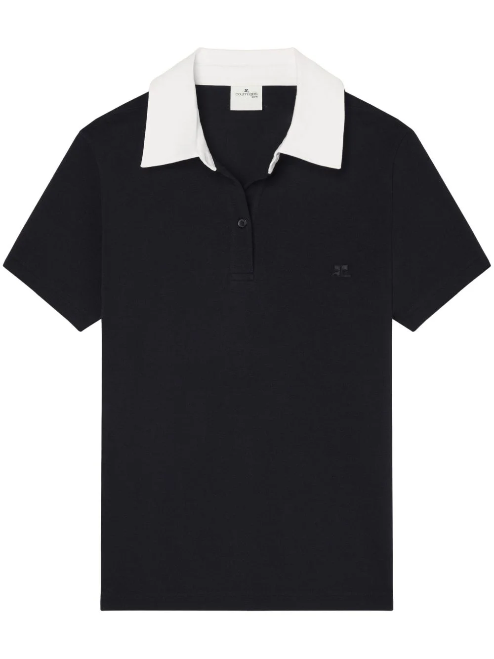 contrasting collar cotton blend polo Highlights - White/black - Cotton blend - Contrasting collar - Embroidered logo at the chest - Front button placket - Straight hem Imported Composition Cotton 96%, Polyamide 4% Washing instructions Read Manufacturer Guidelines