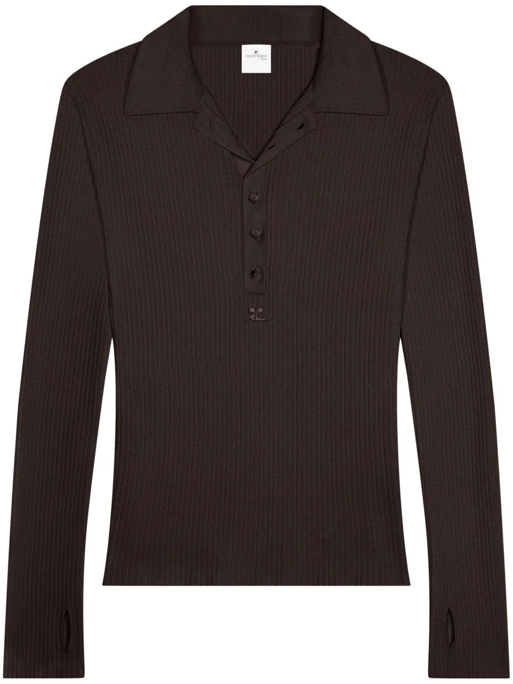 cootn-wool blend polo Highlights - Chocolate brown - Wool-cotton blend - Fine ribbed - Front button placket - Embroidered logo at the chest - Long sleeves Imported Composition Cotton 80%, Wool 20%